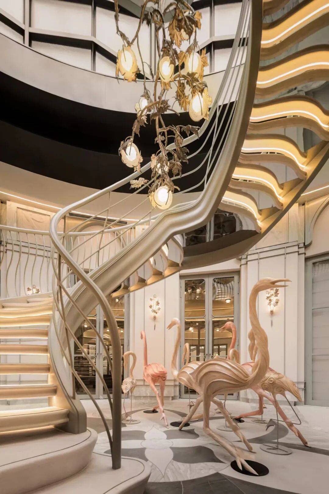 值得一提的还有,在仅70套作品的社区,项目居然还原了邵洵美的“花厅”,将百年历史文脉与新时代海派特质融合,结合复古式旋转楼梯设计,从层次感、艺术感、观赏性等维度打造出一个了