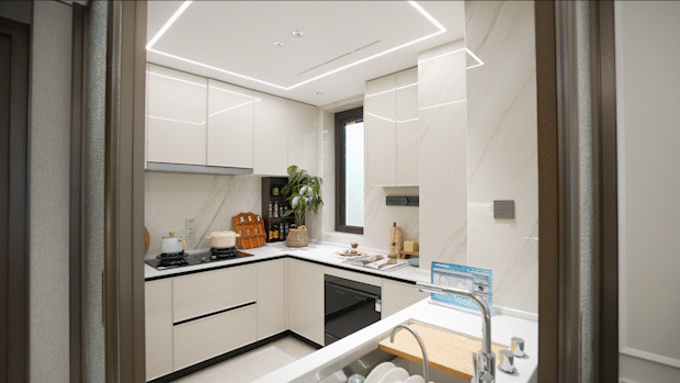 在精装层面,项目走的依旧是高奢范:主卫唯宝(或同等品牌,下同)洗脸盆、高仪的智能马桶、恒温花洒;松下的空调地暧两联供;百朗的新风系统;方太的燃气灶+油烟机+洗碗机;博世的蒸烤一体机等国际高定装标在招商序聚首,确保业主后期使用体验。