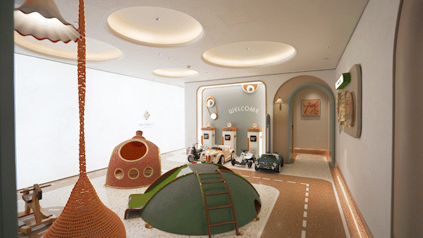 地上空间的美学感受随着车行归家动线也延伸到了地下,招商序的地下车库,不仅精装交付,还提出了“中央车站”的概念。