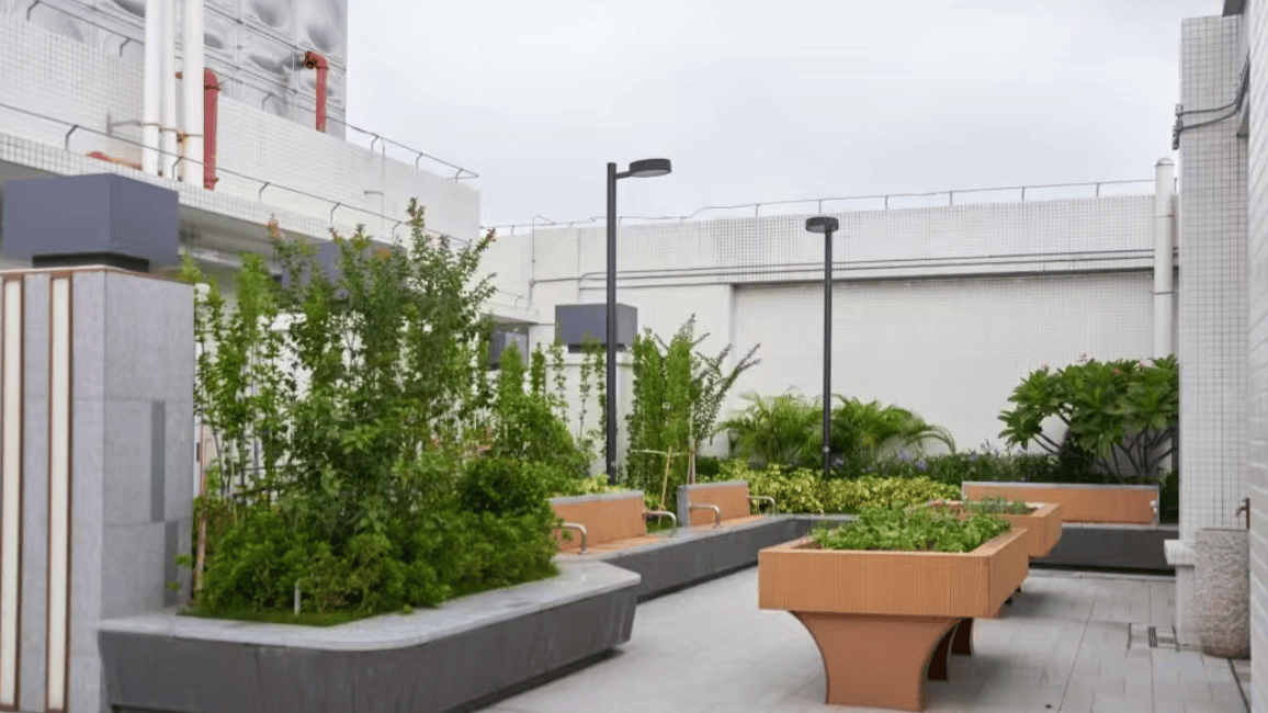 房间采用可升降橱柜、感应夜灯等36项设计,楼层高3.5米,空间宽敞明亮;户外花园划分清心禅室、门球场、生态种植园,满足长者社交与活动需求。
